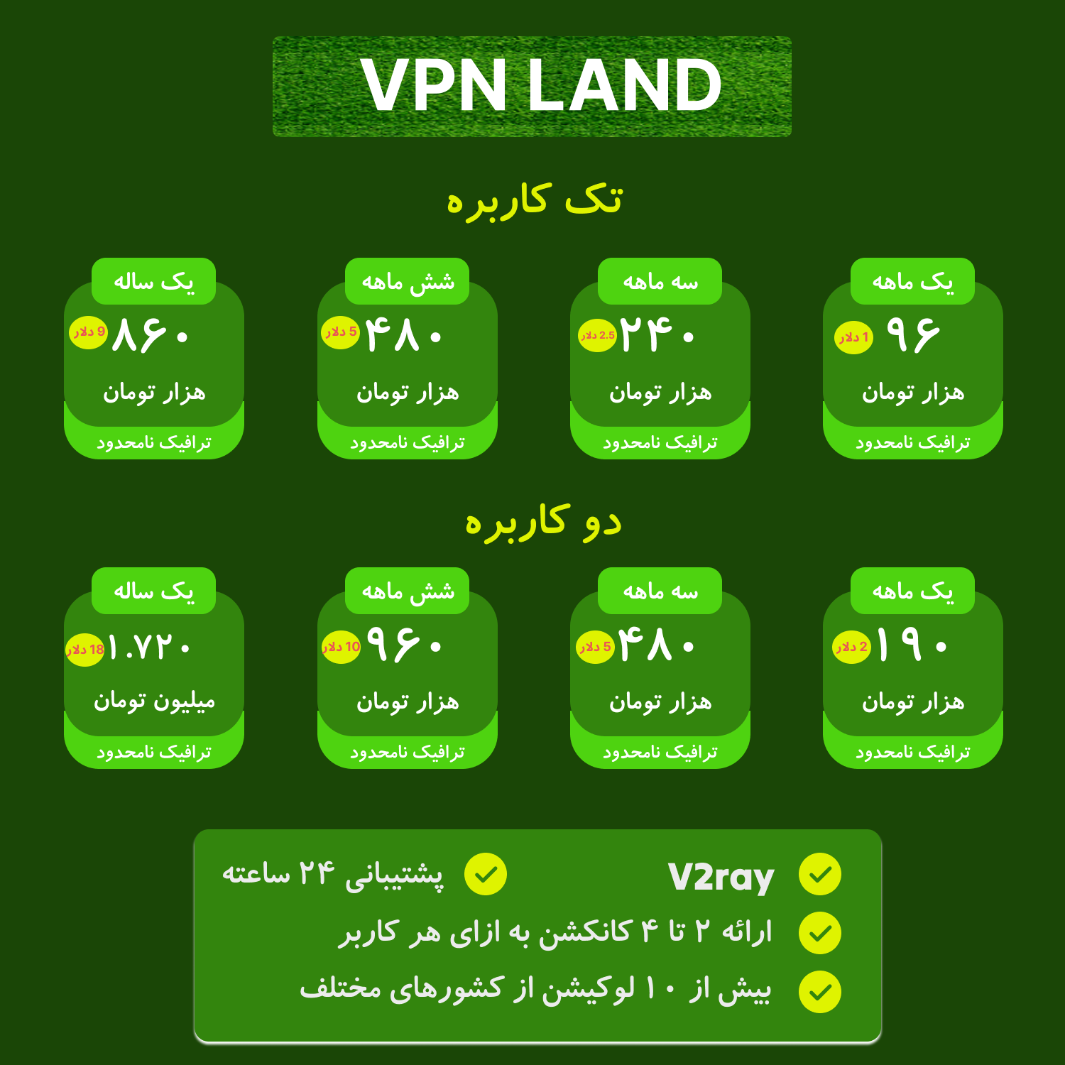 تعرفه های فیلتر شکن اختصاصی VPNLAND